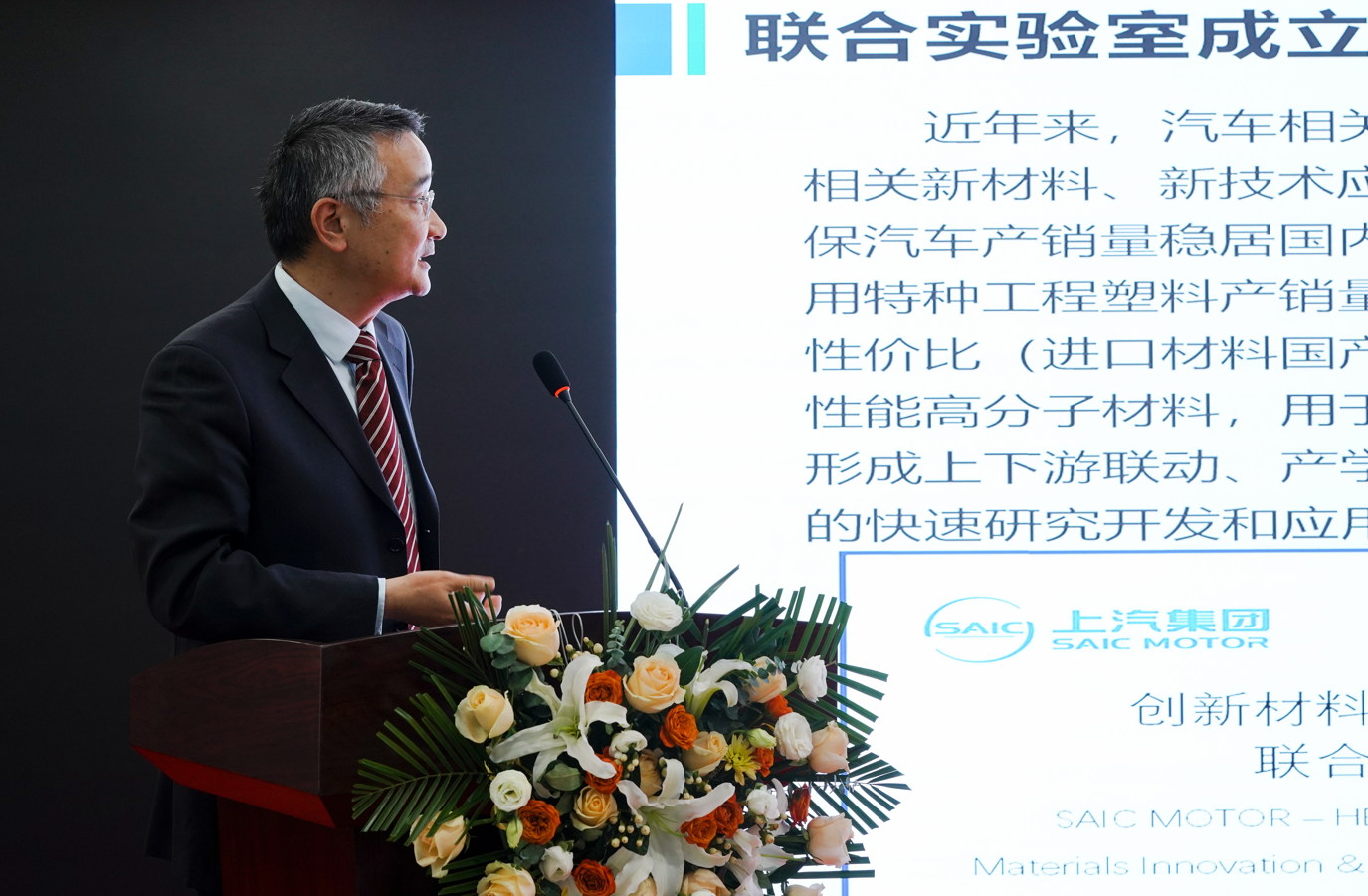 揭牌儀式上,上汽集團(tuán)中心實(shí)驗(yàn)室總監(jiān)閔良為聯(lián)合實(shí)驗(yàn)室成立致辭講話。
